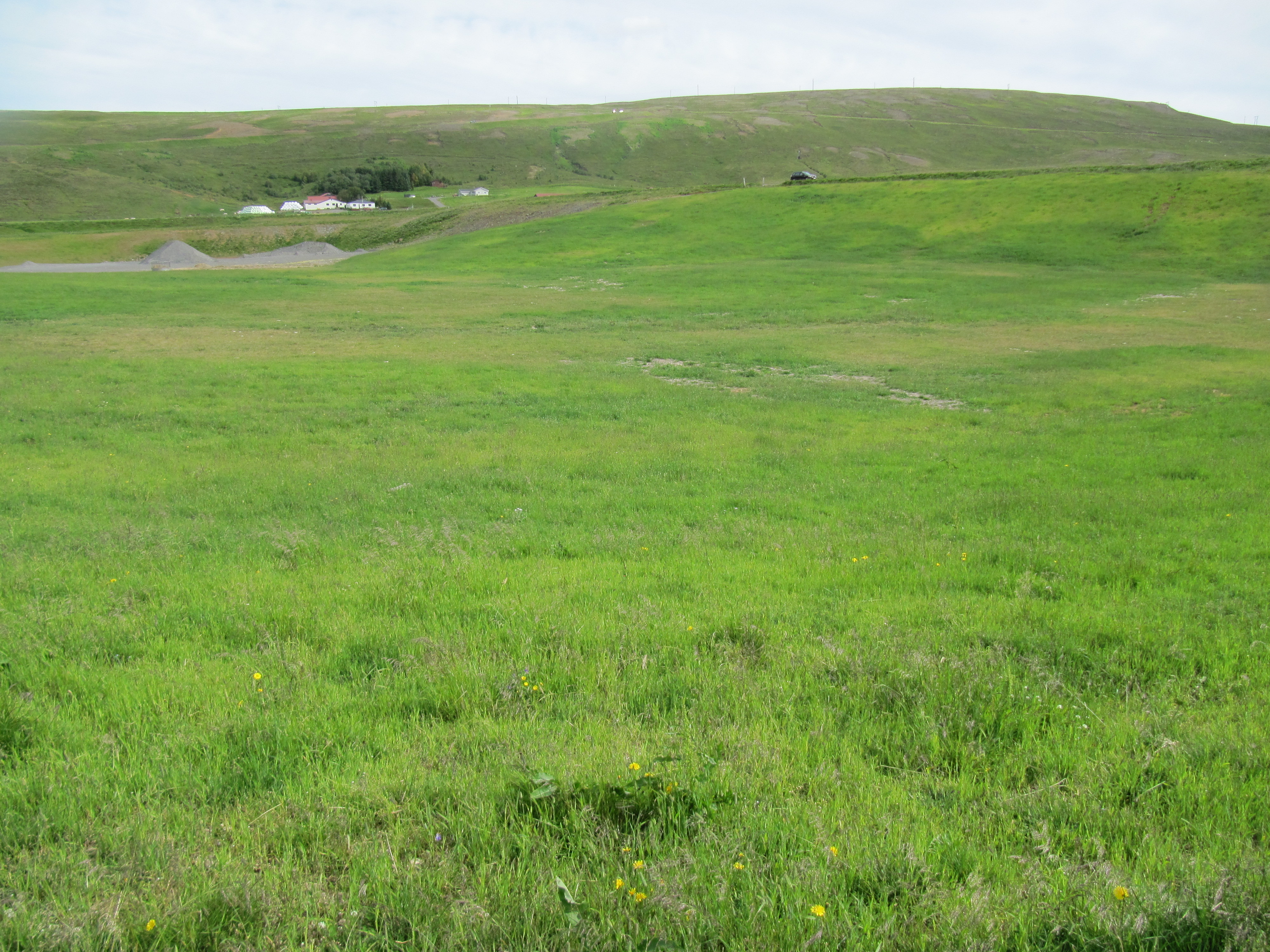 Frágangur miðaðist við að mynda grasi gróinn hvamm sem félli vel að landinu umhverfis námusvæðið. (Ljósm. GBj) -