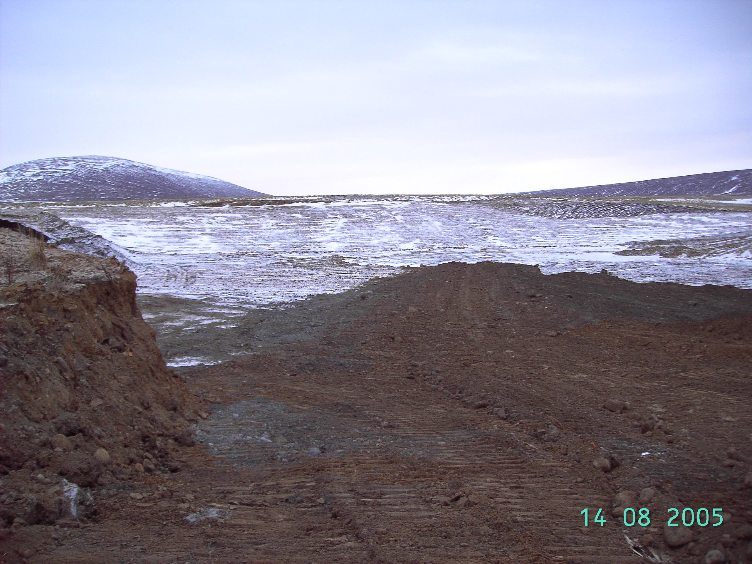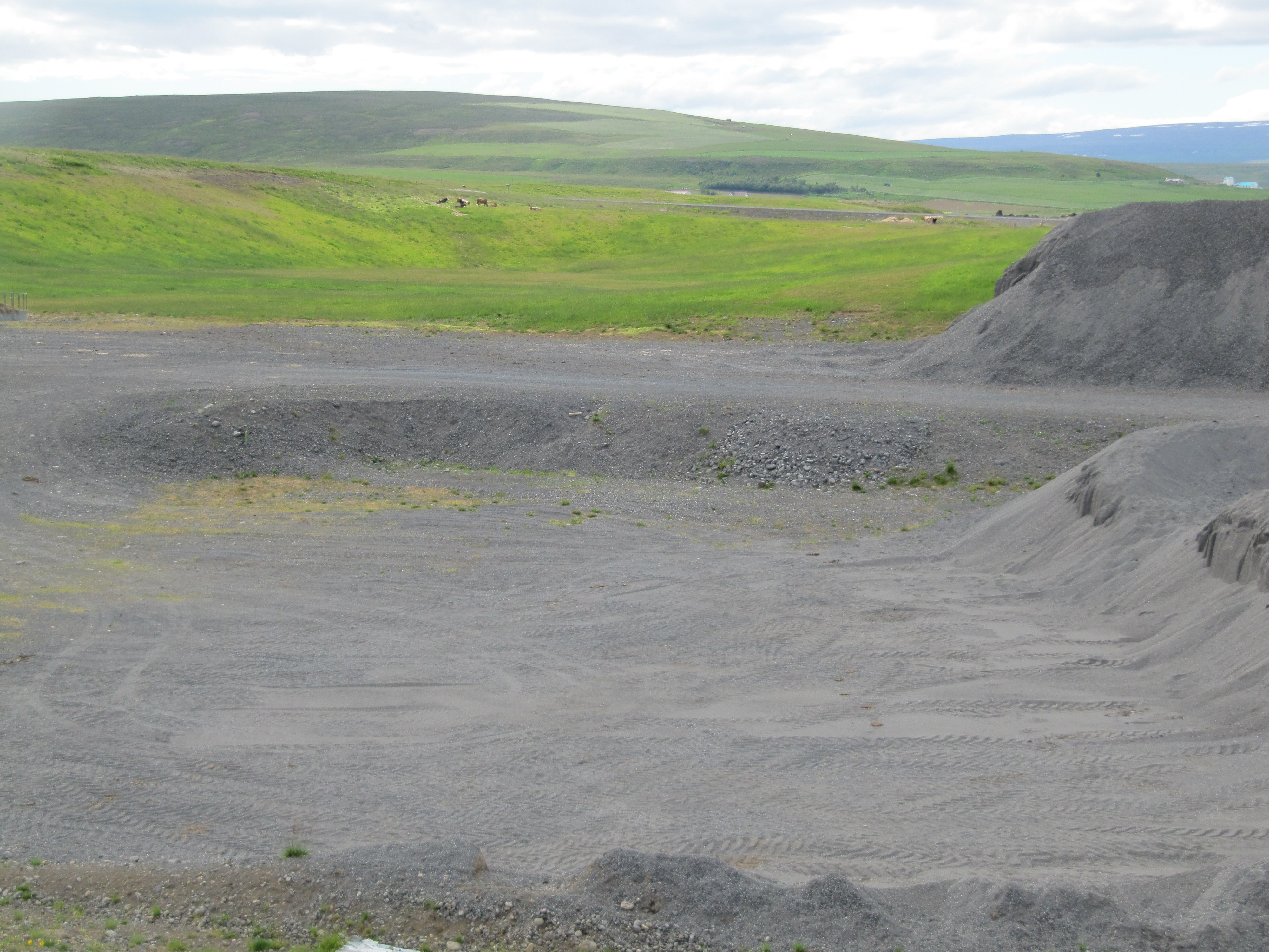 Horft yfir efnistökusvæðið. Nýlega jafnað svæði í baksýn (Ljósm. IÁr) -