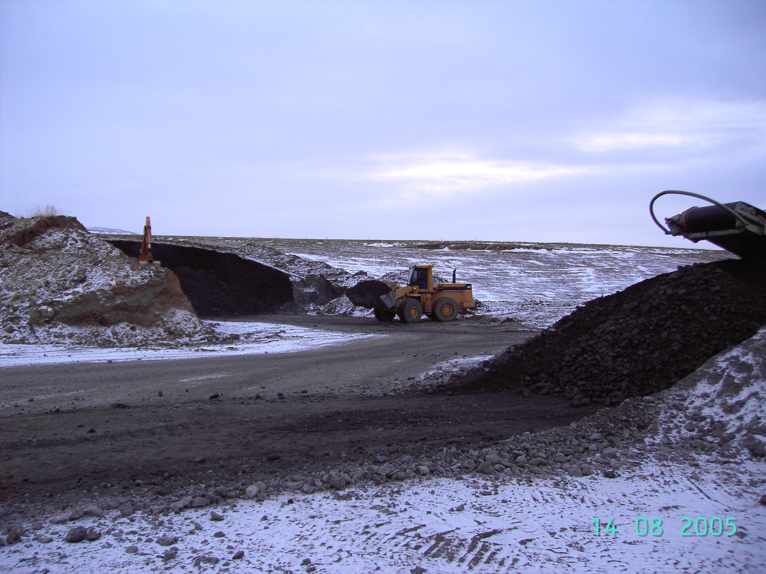 Austasti hluti námunnar enn í notkun. Frágangi lokið á stórum hluta efnistökusvæðisins. (Ljósm. GBj) -