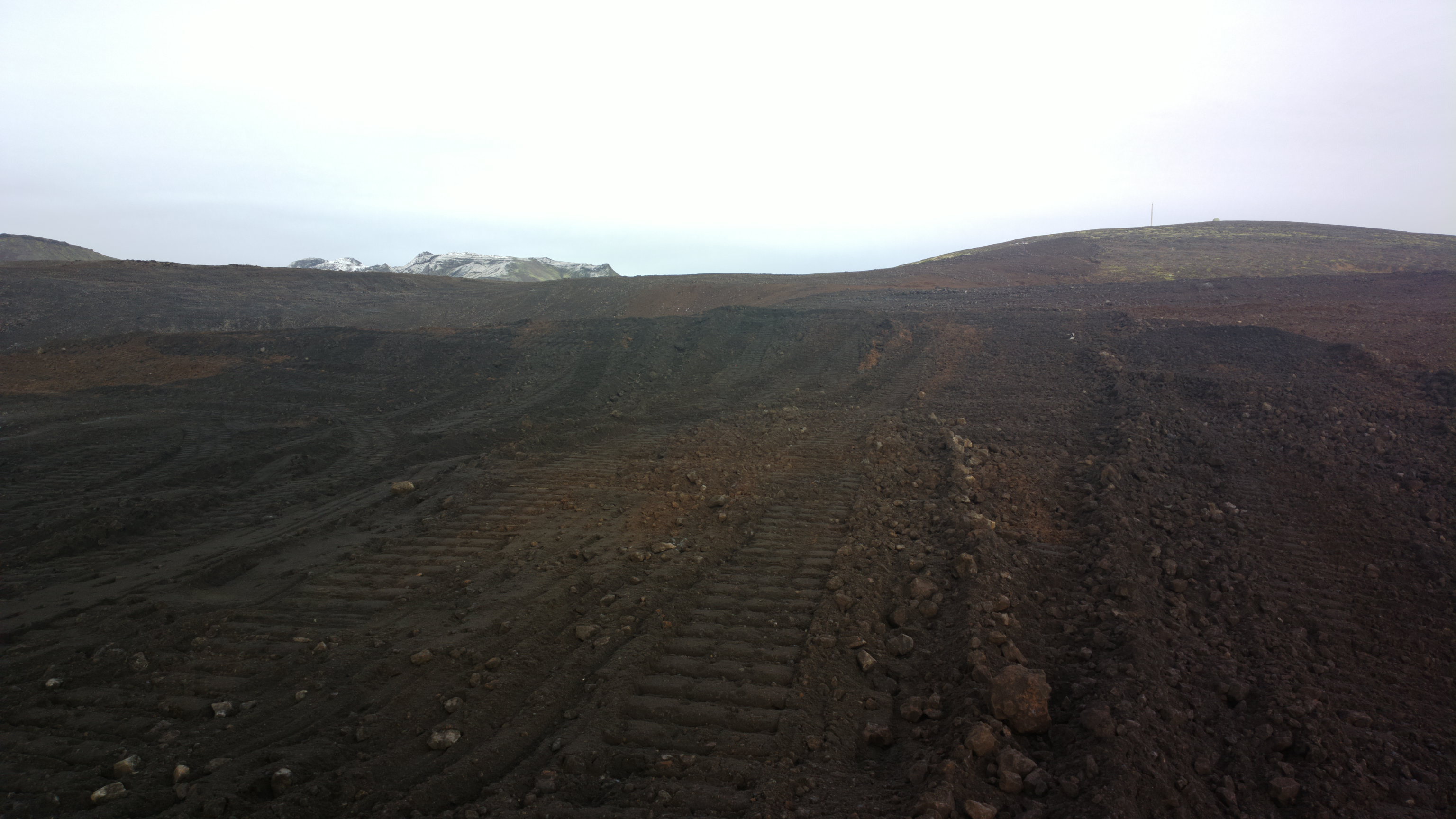 Við frágang námunnar var landið jafnað þannig að það félli sem best að landslagi fjallsins og þess gætt að yfirborðsgerð frágengna svæðisins væri sem líkust yfirborðsgerð nærumhverfis. (Ljósm. MM) -